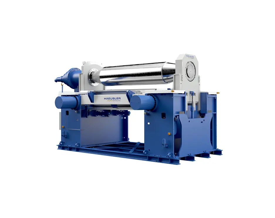 Since the bearings and frame of the new HAEUSLER HDR design are absolutely symmetrical, the bending machine guarantees high bending quality. In addition, the movements of the upper roller are carried out by two identical cylinders, which in turn are 100 percent symmetrical. This results in high folding precision during the folding process. In addition to these aspects, the HDR 3-roller circular bending machine has many other advantages to offer.