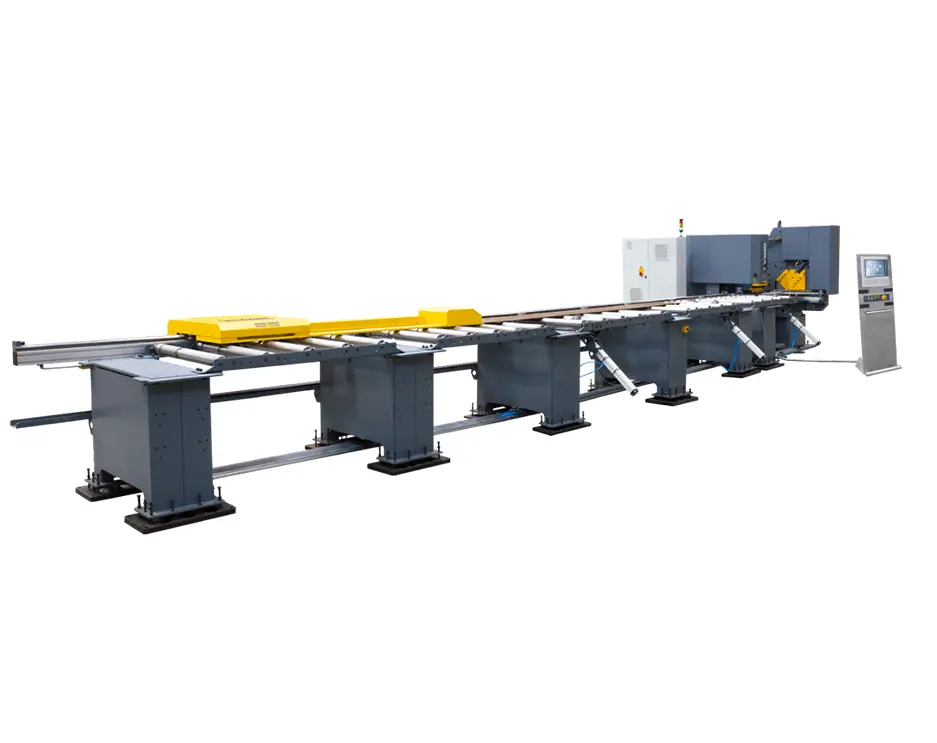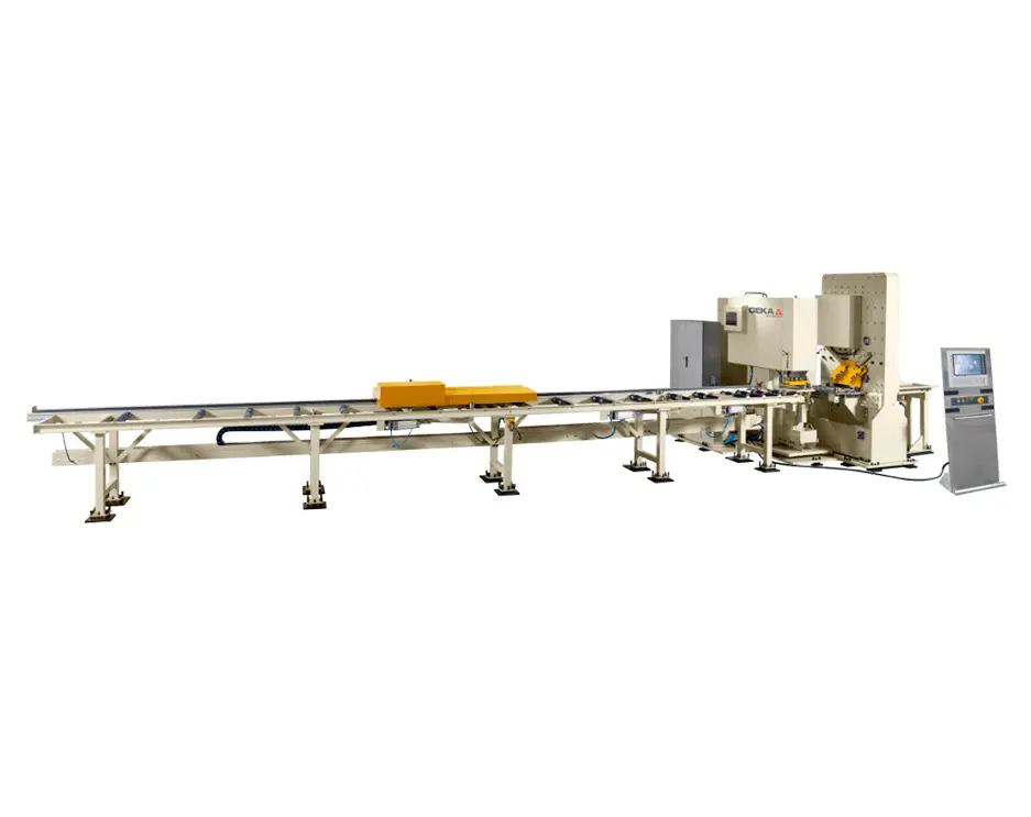 Both of this Geka CNC lines are controlled AUTOMÁTICAlly when punching, shearing, marking and drilling flat bars up to 12 m in length. They are provided with a Triple Head Punching Unit for diameters up to 40mm, and a shearing unit up to 500×40mm.