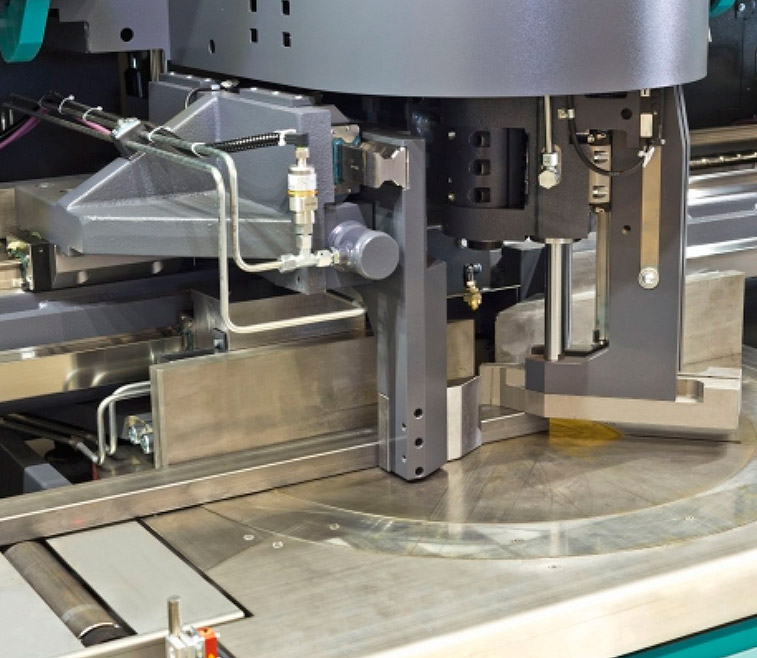 Serra circular totalmente automática com corte em meia-esquadria para perfis e material sólido